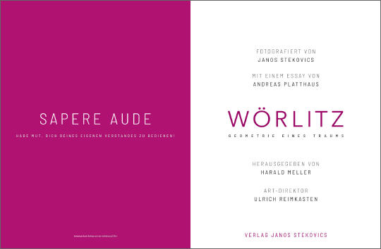 Das Nebeneinander der Fotos ist ein Miteinander, und es werden Übergänge auf den Doppelseiten zu entdecken sein, die nicht natürlich sind, sondern höchst kunstvoll, aber dabei nie künstlich. Auch dieses Buch ist somit ein Bestandteil jenes Zwischenreichs geworden, das das Gartenreich ist, weil hier der Zauber eines fließenden Übergangs regiert. Harmonie ist das Naturgesetz dieser Wörlitzer Weltlandschaft. Damit stellt sie sich paradoxerweise jenseits der Welt, wie wir sie kennen.„