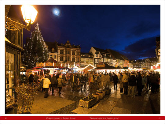Vom Heiligen Nikolaus gibt es Verbindungen zur Zeit der Ottonen und zum Wirken Luthers. Walther von der Vogelweide hat mit der „Magdeburger Weihnacht“ eines der ältesten literarischen Zeugnisse zu den Festtagen hinterlassen. Musikpfade führen zu Paul Gerhardt, Heinrich Schütz und Georg Friedrich Händel, zu Kinderliedern und dem bis heute gepflegten Quempasgesang. Die Bergleute im Mansfelder Land feiern anders als die Halloren in Halle oder die Weihnachtsmänner in Altenbrak. Quedlinburg verwandelt sich im Dezember in eine Adventsstadt, ebenso lohnenswert ist ein Besuch der Weihnachtsmärkte in Halle, Bad Lauchstädt und Werben.