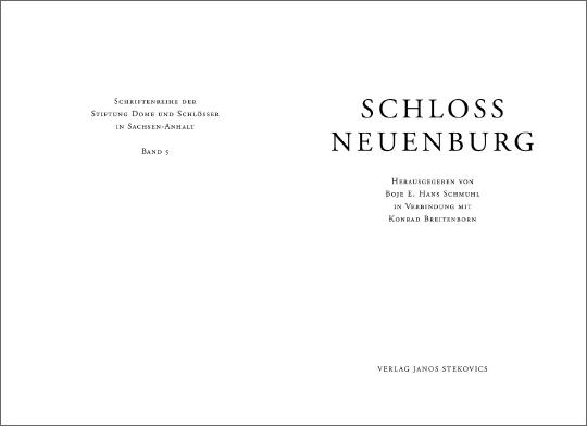 Seit 1997 gehört Schloss Neuenburg zur Stiftung Dome und Schlösser in Sachsen-Anhalt. Der von ihr herausgegebene Band umfasst fünfzehn Beiträge, die in ihrer Gesamtheit die nahezu eintausendjährige Geschichte der Neuenburg – oft auf der Grundlage neuer wissenschaftlicher Erkenntnisse – bis in die unmittelbare Gegenwart hinein abbilden.