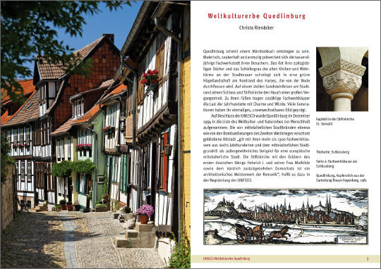 Malerisch im Harz gelegen, blickt die Fachwerkstadt Quedlinburg auf eine mehr als tausendjährige Geschichte zurück. Auf einem steilen Sandsteinfelsen am Rande der Stadt an der Bode sind Schloss und Stiftskirche markante Zeugen einer großen Vergangenheit. Weil die Altstadt von mittelalterlichen Stadtbränden und später von den Bombardierungen des Zweiten Weltkriegs verschont blieb, gilt sie als Musterstadt und wurde 1994 von der UNESCO ins Weltkultur- und Naturerbe der Menschheit aufgenommen. Die Quedlinburgerin Christa Rienäcker porträtiert einladend und in geschichtlichen Exkursen ihre Stadt. Sie erzählt von einer Metropole des frühen Mittelalters, von Schlossberg, Wipertikirche und Münzenberg, von tausend Jahren Stadtgeschichte, Fachwerkbau, Stadtbefestigung, Stadtkirchen und grünem Gürtel Quedlinburgs. Sie schlägt Routen für Stadtrundgänge vor. Der Band enthält einen Stadtplan und eine Vielzahl von Fotos, die Lust auf eine sehens- und entdeckenswerte Stadt machen.