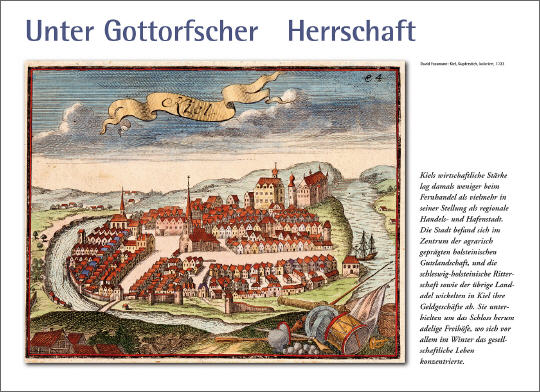 Die Geschichte Kiels, der heutigen Landeshauptstadt Schleswig-Holsteins, ist auf das Engste an maritime Zusammenhänge geknüpft. Schiffbau, Fischfang und -verarbeitung, Handel und Seefahrt haben seine fast 800-jährige Historie geprägt. Immer wieder waren seine vielfältigen Verbindungen zum Meer die Ursache für Aufschwünge, aber auch für Krisen im Gemeinwesen. 1283 schon wurde Kiel Mitglied der Hanse. Seit 1665 ist es Universitätsstadt. Nachdem im 18. Jahrhundert Katharina II. von Russland durch ihren Sohn die Machtfragen zwischen Gottorf und Dänemark hatte klären lassen, kam Kiel zeitweise unter dänische Herrschaft.